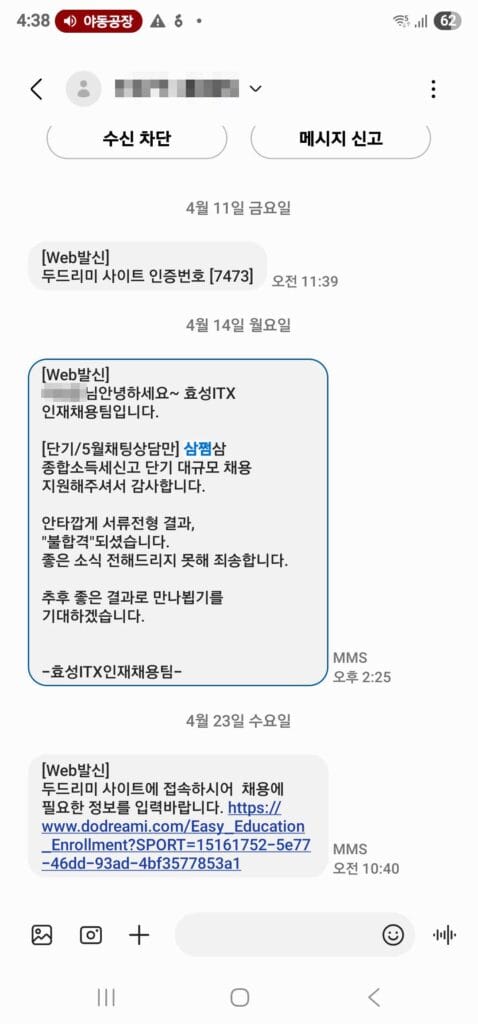 처음에 지원했을 때는 불합격 문자로 안내가 와서 떨어졌나? 하고 다른 곳에 지원하려고 했는데